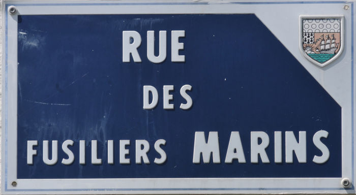 La brigade des fusiliers-marins est créée le 7 août 1914 avec le surplus d’effectif dont dispose la Marine. La brigade est composée de deux régiments et regroupe 6 000 hommes venant de Lorient, Rochefort, Brest, Cherbourg et Toulon sous le commandement du contre-amiral Ronarc’h. La mission initiale de la Brigade est de défendre Paris et sa banlieue. L’extrême jeunesse des 700 apprentis fusiliers marins dont les plus jeunes ont à peine seize ans et demi surprend les Parisiens qui les surnomment les « Demoiselles de la Marine ». Puis c’est au tour des Allemands d’être surpris et de les nommer les « Demoiselles au pompon rouge ». Du 16 octobre au 10 novembre 1914, la Brigade s’illustre à Dixmude en empêchant les Allemands de passer l’Yser. Le 11 janvier 1915, la brigade reçoit à Dunkerque, son drapeau des mains du président de la République, Raymond Poincaré. Après avoir combattu à Nieuport, le gouvernement décide de dissoudre la Brigade en novembre 1915. Celui-ci a besoin d’hommes pour lutter contre les sous-marins allemands. Il est alors décidé de la création d’un bataillon de fusiliers marins qui reçoit le drapeau de la brigade et reste au front. La brigade perd 13 844 hommes en seize mois. En 1919, les fusiliers marins de la brigade et du bataillon reçoivent leur 6e citation.