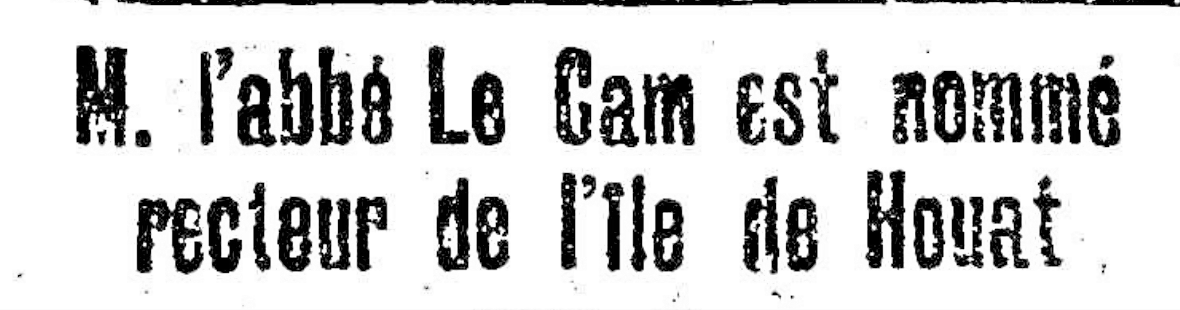En quelques années, il s’est fondu dans le paysage et comme les îliens, pêche, jardine, chasse et cueille. Cette vie toute simple est bien évidemment rythmée par les célébrations et fêtes religieuses et M. le Recteur est très attentif à la présence de ses ouailles et à leur participation active aux cérémonies. Le 15 septembre 1933, La Croix du Morbihan titre : « Le recteur de l’île de Houat vient d’être nommé gardien du Phare. » C’est une excellente nouvelle pour les navigateurs car « L’île de Houat, au large de Quiberon, qui, jusqu’ici, ne possédait ni phare ni sémaphore, et souvent pendant les mauvais temps d’hiver, se trouvait séparée du reste du continent, vient d’être doté d’un phare appelé à rendre de grands services aux navigateurs, et dont la portée est de 2 milles ». Pour veiller à ce poste de confiance, on a choisi M. L’abbé Louis Le Cam, recteur de Houat. Désormais, il cumule presque toutes les fonctions et publie en 1932 un nouvel ouvrage consacré à son île : « Houat et Hoëdic – Histoire – Charte – Récits de voyage. » C’est une magnifique conclusion à une belle aventure qu’il poursuit encore quelques années avant de quitter pour des raisons de santé, le cœur gros, ses chers houatais et revenir à la fin de l’année 1937 sur le continent. Surnommé par ses confrères « Le Cam-Océan » le capitaine de réserve d’infanterie coloniale et héros de la Grande Guerre prend la mer pour d’autres rivages.